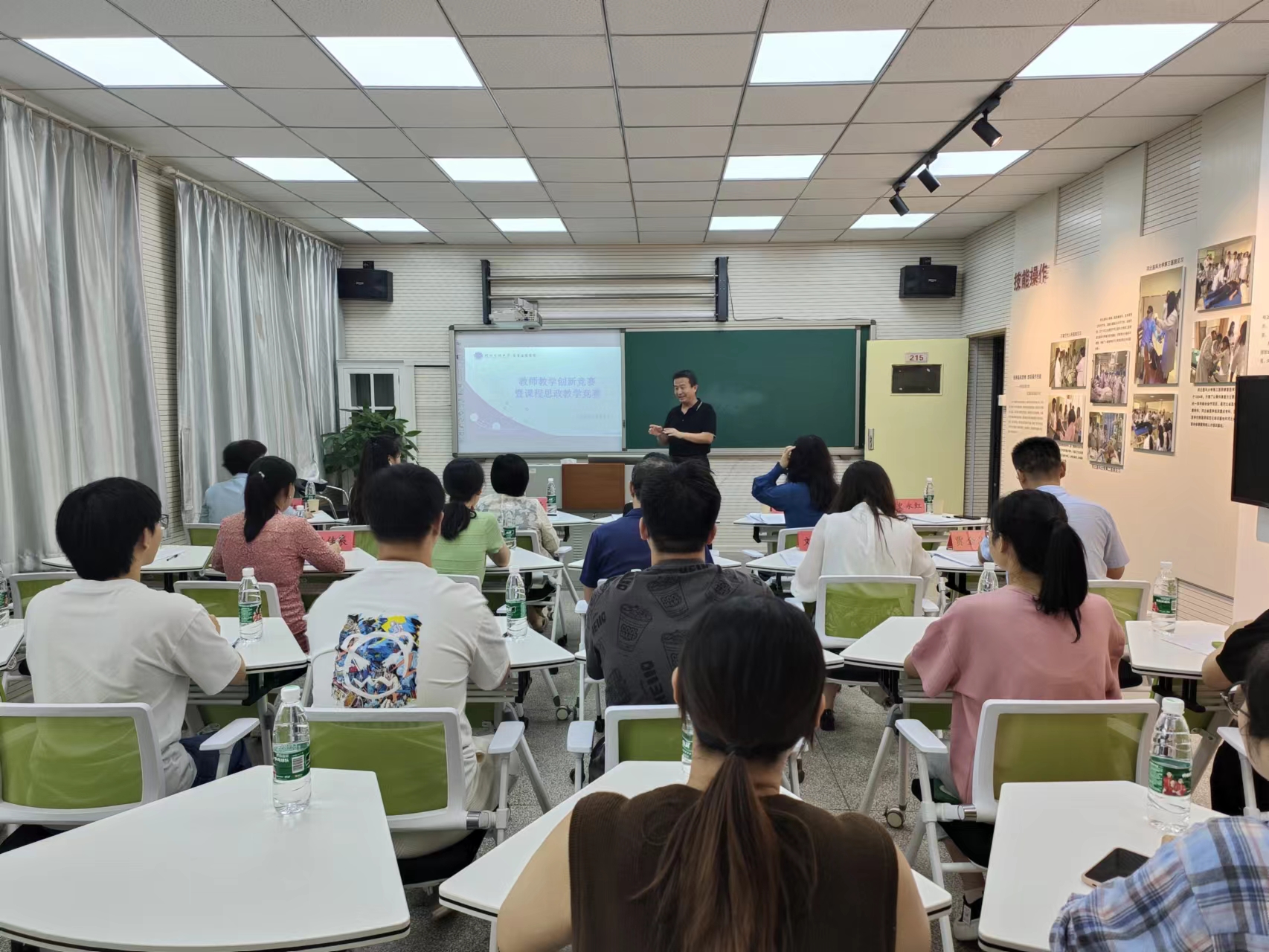 为深入贯彻落实习近平新时代中国特色社会主义思想和党的二十大精神,落实立德树人根本任务,推进教师教学创新和课程思政建设,2023年9月8日,在学校教师发展中心的支持和指导下,蘑菇视频 在建华校区尚勤楼215举办了2023年教师教学创新暨课程思政教学竞赛。活动由学院副院长贾金海主持。